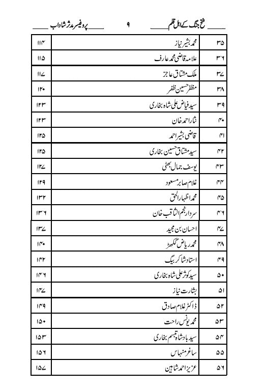 تحقیق ایک مشکل کام ہے اور یہ کام اس وقت مشکل سے مشکل تر ہو جاتا ہے جب آپ کے ممدوح کے متعلقین آپ کو اس کے کوائف مہیا کرنے میں لیت و لعل سے کام لیں۔ اور جب ممدوح سینکڑوں کی تعداد میں ہوں تو ان کے متعلقین کی تعداد ہزاروں کو جا پہنچتی ہے اور یوں یہ مشکل تر کام مشکل ترین ہو جاتا ہے۔ پروفیسر مدثر شاداب کے ساتھ بھی یہی ہوا۔ اس نے ”فتح جنگ کے اہل قلم جیسے ادق موضوع کا انتخاب کیا جس میں سینکڑوں اہل قلم کے کو الف درکار تھے۔ اس کام کو پایہ تکمیل تک پہنچانے کے لئے اس نے ایک ایک اہل قلم کے دروازے پر جا کر دستک دی۔ کسی نے تو دروازہ تک نہیں کھولا مگر کئی ایسے بھی تھے جنھوں نے اس کی آواز پر ایک ہی وقت میں دل اور دروازے دونوں وا کر دیئے۔ پروفیسر مدثر شاداب نے اپنے تحقیقی عمل کی بنیاد منطقی اور معروضی معیارات پر رکھتے ہوئے اپنے تعصبات کو کسی بھی سطح پر تحقیقی عمل میں داخل نہیں ہونے دیا۔ اس نوجوان محقق نے تمام تر موصولہ مواد کا تجزیہ کیا اور چھان پھٹک کے بعد صرف اس مواد کو اپنی تحقیق میں شامل کیا جو مستند تھا۔ اگر کہیں قیاس اور تخیل کی ضرورت پیش آئی تو تحقیقی اصولوں کے مطابق اسے دلائل کی روشنی میں پر کھا اور جانا گیا۔ پروفیسر مدثر شاداب کا یہ تحقیقی کام لائق صد تحسین ہے۔ اللہ کریم اس کے قلم کو دنیا کے لئے خیر کا وسیلہ بنائے۔
