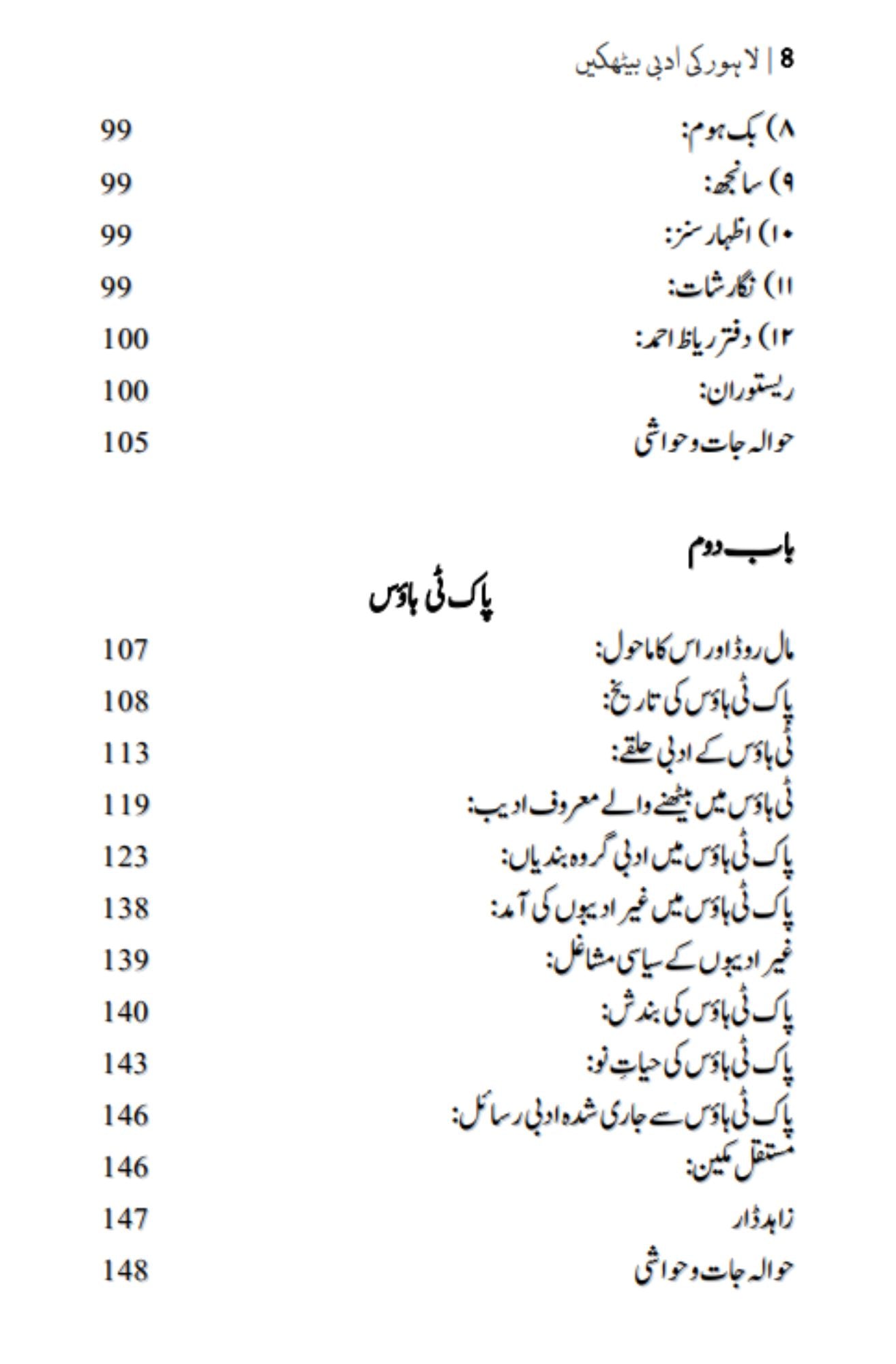 لاہور بھی کیا عجیب مہر نگاراں ہے۔ یہاں رنگ رنگ کے پھول مہکتے ہیں اور ڈھنگ ڈھنگ کے لوگ لیے ہیں۔ یہ شہر زندہ دلوں کا شہر ہے لوگ ہنستے مسکراتے اور محفلیں آباد رکھتے ہیں ۔ لاہور کی مجلسیں اور محفلیں صدیوں سے آباد و شاد آباد ہیں ۔ ان محفلوں میں لوگوں کی زندہ دلی اپنا جلوہ دکھاتی ہے۔ بات سے بات پیدا کرنا اور ہر بات میں نئی بات اخذ کرنا ان زندہ دلوں کا کمال ہے یہی کمال محفلوں اور مجلسوں کو آباد کیے ہوئے ہیں۔ لوگوں کو تنہائی کا زہر پینے سے بچائے رکھتا ہے۔ ان کی باتوں میں محبتوں کا امرت ہوتا ہے۔ جو انھیں دُکھ درد کے لمحوں میں جینے کا حوصلہ اور زندگی کا عزم عطا کرتا ہے۔ لاہور کی مجلسیں اور محفلوں کے رنگ پھولوں کے رنگوں کی طرح بوقلموں ہیں۔ ان محفلوں میں بہت سے ایسی ہیں جہاں زیادہ تر ادب پر گفتگو ہوتی ہے۔ ماضی بعید اور قریب ہی لاہور کے حال روڈ اور قرب و جوار کی سٹرکوں پر بہت سے چائے خانے ہوتے تھے ۔ کھانے پینے کے مراکز ہوتے تھے۔ ان جگہوں پر اہل علم اور صاحبان ادب جمع ہوتے تھے یہ لوگ شعر و ادب پر باتیں کرتے ۔ آگہی کے چراغ جلاتے تھے۔ جو دلوں کی دُنیا کو روشن رکھتے تھے۔ ان مقامات کو لوگ " عرب ہوٹل، نگینہ بیکری , کافی ہاؤس"، "چائینیز لنچ ہوم اور پاک ٹی ہاؤس کے نام سے جانتے پہچانتے تھے۔ ان میں سے لے دے کر اب صرف " پاک ٹی ہاؤس بیچ گیا ہے۔ وہ بھی کہاں بچا ہے۔ وہ بھی ایک یاداور یادگار ہے۔ اُس کا نام ہی بچا ہے۔ اس کا رنگ ڈھنگ ہی بدل گیا ہے۔