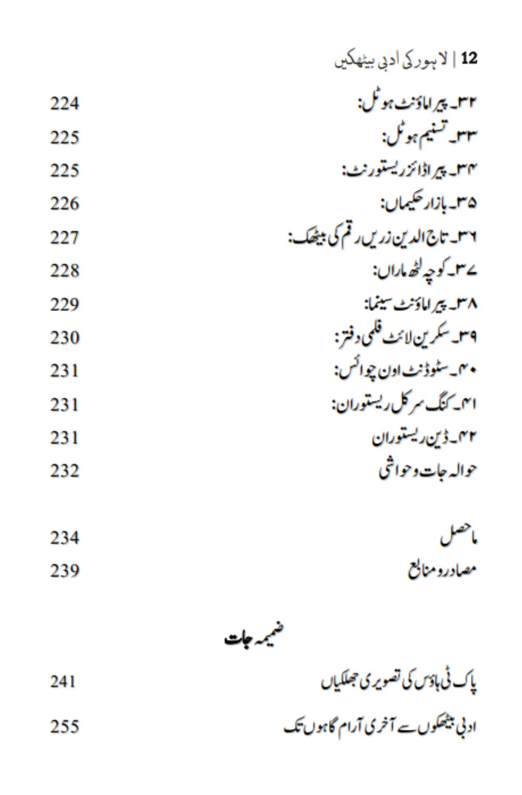 لاہور میں چائے خانوں کے علاوہ بھی ادبی محفلوں اور مجلسوں کے حوالے ملتے ہیں۔ پبلشرز کے دفاتر ، اساتذہ ادب کے کمرے ،اہل علم کی بینکیں، غرضی کتنی ہی جگہیں تھیں جہاں ادبی مجالس آباد تھیں ۔ ان میں سے بہت سے محفلیں اجڑ گئیں، بہت سے مقامات بے آباد یا بے چراغ ہو گئے ۔ مدثر خان نے ان محفلوں کی تاریخ پر تحقیق کی ہے۔ یہ موضوع بہت پھیلا ہوا ہے۔ محقق نے بساط بھر کام کیا ہے اور بہت اچھا کام کیا ہے۔ اُمید ہے کھلے دل اور محبت سے اس کام کا خیر مقدم کیا جائے گا اور اس موضوع پر تحقیق کا سفر آگے بڑھے گا۔